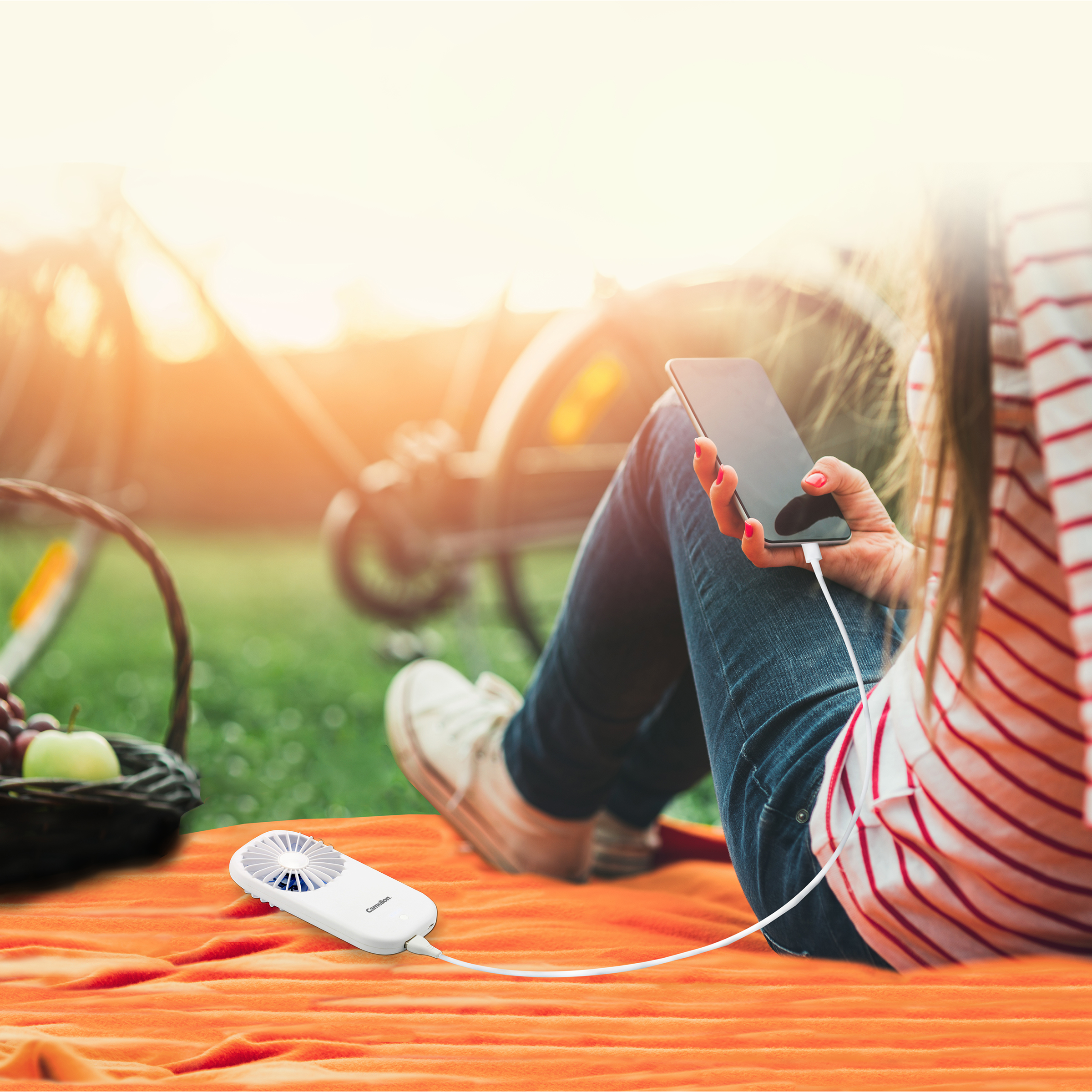 Stay cool and charged with this 2-in-1 Portable Charger with Fan. Featuring a built-in fan with two speed settings, it delivers a refreshing breeze while powering your devices. The 3800 mAh battery provides a safe, reliable charge on the go. Lightweight and compact with an ergonomic design, it fits easily in your bag or pocket. Perfect for travel, outdoor activities, the office, or home use—this handy gadget keeps you comfortable and connected wherever you are.